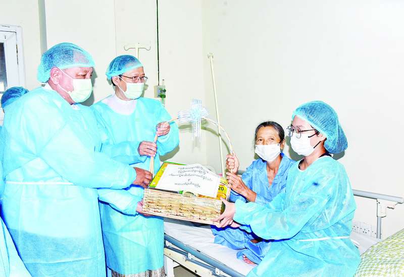 ကျန်းမာရေးဝန်ကြီးဌာန ပြည်ထောင်စုဝန်ကြီး ဒေါက်တာသက်ခိုင်ဝင်းသည် ယမန်နေ့ နံနက်ပိုင်းက အထူးကုဆေးရုံကြီး (ခုတင်-၅၀၀) ရန်ကုန်၌ အသည်းအစားထိုးခွဲစိတ်ကုသမှု အောင်မြင်စွာဆောင်ရွက်ထားရှိသည့် အသည်းလူနာများနှင့် အသည်းအလှူရှင်များကို ကြည့်ရှုအားပေးစကားပြောကြားကာ အစားအသောက်လက်ဆောင်ခြင်းများ ပေးအပ်သည်။