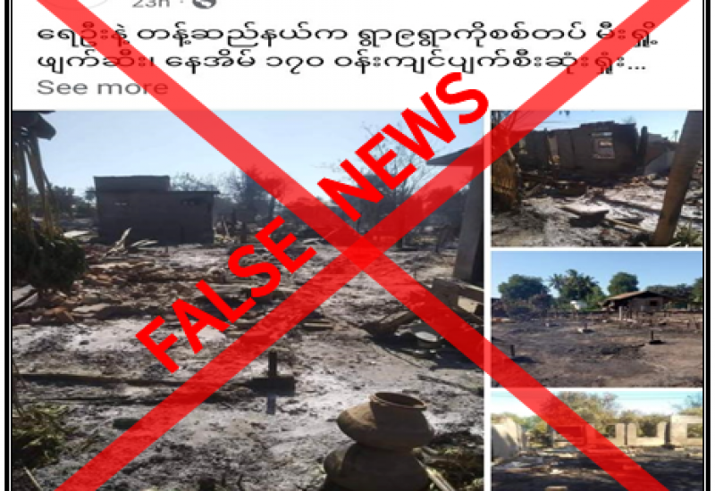 စစ်ကိုင်းတိုင်းဒေသကြီး၊ ရေဦးမြို့နယ်နှင့်တန့်ဆည်မြို့နယ်ရှိကျေးရွာများကို လုံခြုံရေးတပ်ဖွဲ့ဝင်များက နိုဝင်ဘာ(၁၆)ရက်မှ (၁၉)ရက်အတွင်း မီးရှို့ဖျက်ဆီးခဲ့ကြောင်း တရားမဝင်ပြည်ဖျက်မီဒီယာများက သတင်းအတု သတင်းအမှားများ ရေးသားဖြန့်ဝေလျက်ရှိကြောင်း တွေ့ရှိရသည်။