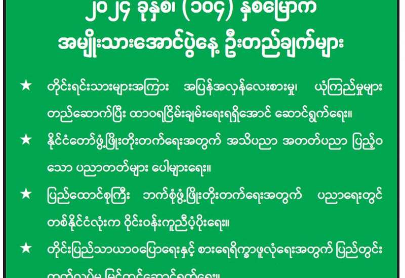 ၂၀၂၄ ခုနှစ်၊ (၁၀၄) နှစ်မြောက် အမျိုးသားအောင်ပွဲနေ့ ဦးတည်ချက်များ