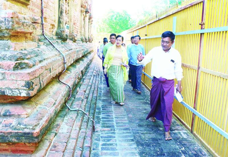 သာသနာရေးနှင့်ယဉ်ကျေးမှုဝန်ကြီးဌာန ဒုတိယဝန်ကြီး ဒေါ်နုမြဇံသည် ယမန်နေ့ နံနက်ပိုင်းတွင် မန္တလေးတိုင်းဒေသကြီး ပုဂံယဉ်ကျေးမှုအမွေအနှစ်ဒေသရှိ ရှေးဟောင်းအဆောက်အအုံများ ပြုပြင်ထိန်းသိမ်းခြင်းနှင့် မိုးကြိုးလွှဲတပ်ဆင်ဆောင်ရွက်ခြင်းတို့ကို လှည့်လည်ကြည့်ရှုစစ်ဆေးသည်။