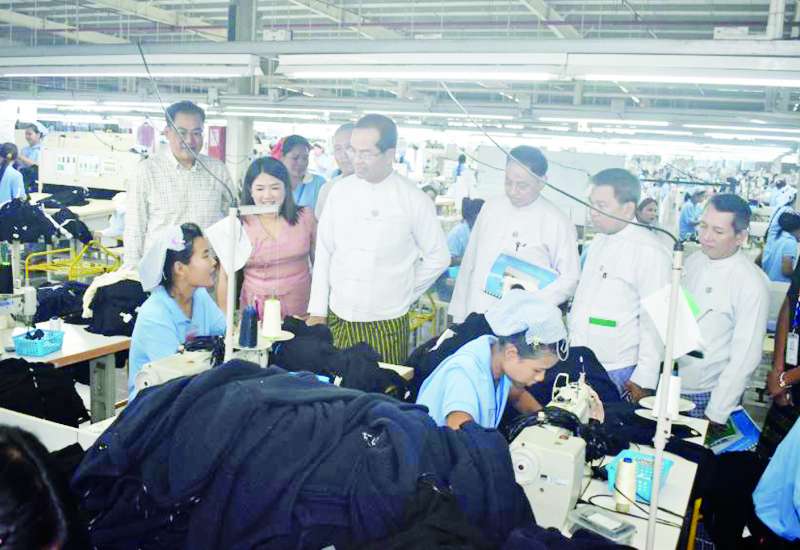 အလုပ်သမားဝန်ကြီးဌာန ဒုတိယဝန်ကြီး ဦးဝင်းရှိန်သည် ယနေ့နံနက်ပိုင်းတွင် ရန်ကုန်တိုင်းဒေသကြီး ရွှေပြည်သာမြို့နယ်ရှိ Alpha Best Global Limited ဖိနပ်ချုပ်စက်ရုံ၊ အထည်ချုပ်စက်ရုံများဖြစ်သည့် Rong Da Gar-ments Co.,Ltd. နှင့် ရွှေဇာမဏီစက်ရုံများသို့ သွားရောက်ကြည့်ရှုအားပေးပြီး လိုအပ်သည်များ ညှိနှိုင်းပေးကာ စက်ရုံအတွင်း လှည့်လည်ကြည့်ရှု၍ လုပ်သားများနှင့် ရင်းရင်းနှီးနှီး တွေ့ဆုံအားပေးသည်။