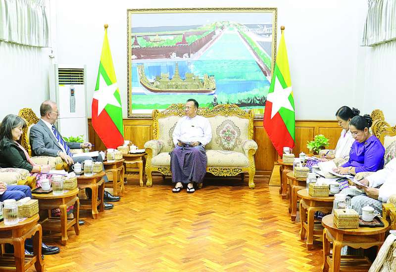 ကျန်းမာရေးဝန်ကြီးဌာန ပြည်ထောင်စုဝန်ကြီး ဒေါက်တာ သက်ခိုင်ဝင်းသည် အမေရိကန်နိုင်ငံ နယူးယောက်မြို့ရှိ ကုလသမဂ္ဂကလေးများ ရန်ပုံငွေအဖွဲ့ (UNICEF) ရုံးချုပ်မှ ဒုတိယအမှုဆောင်ညွှန်ကြားရေးမှူး Mr. Edward Chaker Chaiban ဦးဆောင်သော ကိုယ်စားလှယ်အဖွဲ့အား ယနေ့မွန်းလွဲပိုင်းတွင် ကျန်းမာရေးဝန်ကြီးဌာန ပြည်ထောင်စုဝန်ကြီး ဧည့်ခန်းမဆောင်၌ လက်ခံတွေ့ဆုံသည်။