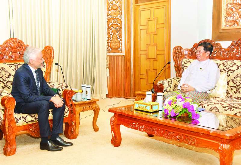 ဒုတိယဝန်ကြီးချုပ်နှင့် နိုင်ငံခြားရေးဝန်ကြီးဌာန ပြည်ထောင်စုဝန်ကြီး ဦးသန်းဆွေသည် မြန်မာနိုင်ငံဆိုင်ရာ အထူးအာဏာကုန်လွှဲအပ်ခြင်းခံရသော ဘရာဇီးလ်ဖက်ဒရယ်သမ္မတနိုင်ငံ သံအမတ်ကြီး မစ္စတာ ဂူစထာဗိုရော်ချာ ဒီမင်နင်းဇီးစ်ကို ယနေ့မွန်းလွဲ ၁ နာရီတွင် နေပြည်တော်ရှိ နိုင်ငံခြားရေးဝန်ကြီးဌာန၌ လက်ခံတွေ့ဆုံသည်။