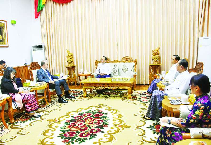 ရင်းနှီးမြှုပ်နှံမှုနှင့် နိုင်ငံခြားစီးပွားဆက်သွယ်ရေးဝန်ကြီးဌာန ပြည်ထောင်စုဝန်ကြီး ဒေါက်တာကံဇော်သည် အမေရိကန်နိုင်ငံ နယူးယောက်မြို့ရှိ ကုလသမဂ္ဂကလေးများ ရန်ပုံငွေအဖွဲ့ (UNICEF) ရုံးချုပ်မှ ဒုတိယအမှုဆောင်ညွှန်ကြားရေးမှူး Mr. Edward Chaker Chaiban ဦးဆောင်သော ကိုယ်စားလှယ်အဖွဲ့အား ယနေ့မွန်းလွဲပိုင်းတွင် နေပြည်တော်ရှိ ရင်းနှီးမြှုပ်နှံမှုနှင့် နိုင်ငံခြားစီးပွားဆက်သွယ်ရေးဝန်ကြီးဌာန၌ လက်ခံတွေ့ဆုံသည်။