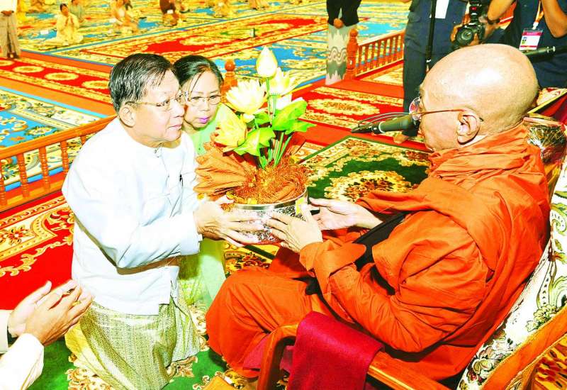 ပြည်ထောင်စုသမ္မတမြန်မာနိုင်ငံတော်၊ နိုင်ငံတော်စီမံအုပ်ချုပ်ရေးကောင်စီ ၂၀၂၄ ခုနှစ် ကထိန်သင်္ကန်းဆက်ကပ်လှူဒါန်းပွဲအခမ်းအနားကို ယနေ့နံနက်ပိုင်းတွင် နေပြည်တော်ရှိ ဥပ္ပါတသန္တိစေတီတော်၊ သာသနာ့မဟာဗိမာန်တော်ကြီး၌ ဆင်ယင်ကျင်းပရာ နိုင်ငံတော်စီမံအုပ်ချုပ်ရေးကောင်စီဥက္ကဋ္ဌ နိုင်ငံတော်ဝန်ကြီးချုပ် ဗိုလ်ချုပ်မှူးကြီး မင်းအောင်လှိုင်နှင့်ဇနီး ဒေါ်ကြူကြူလှတို့ တက်ရောက်၍ ကထိန်လျာသင်္ကန်းနှင့် ကထိန်လှူဖွယ်ပစ္စည်းများ ဆက်ကပ်လှူဒါန်းသည်။
