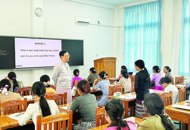ပညာရေးဝန်ကြီးဌာန ဒုတိယဝန်ကြီး ဒေါက်တာဇော်မြင့်သည် ယနေ့နံနက်ပိုင်းတွင် Naypyitaw State Academy သို့ ရောက်ရှိပြီး မြေယာရှုခင်းအလှဆောင်ရွက်နေမှုနှင့် ဆေးပညာ Foundation Course ကျောင်းသား ကျောင်းသူများနှင့် ရင်းရင်းနှီးနှီးတွေ့ဆုံအားပေးကာ ဓာတ်ခွဲခန်းကို ကြည့်ရှုသည်။