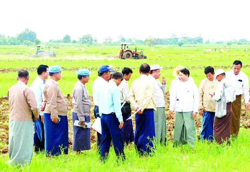 စိုက်ပျိုးရေး၊ မွေးမြူရေးနှင့်ဆည်မြောင်းဝန်ကြီး ဌာနပြည်ထောင်စုဝန်ကြီး ဦးမင်းနောင်သည် ယနေ့ညနေပိုင်းက နေပြည်တော်ကောင်စီနယ်မြေ ပျဉ်းမနားမြို့နယ် သစ်ဆိမ့်ပင်ကျေးရွာ စနစ်ကျလယ်ယာမြေ ၉၅ ဧကတွင် ဆောင်းသီးနှံ မတ်ပဲနှင့် ကုလားပဲစိုက်ပျိုးမည့် တောင်သူ့စိုက်ကွင်းကို စက်မှုလယ်ယာဦးစီးဌာနက ထွန်စက်ကြီးများဖြင့် မြေပြင်ထွန်ယက်ပေးနေမှုကို ကွင်းဆင်းကြည့်ရှုစစ်ဆေးသည်။