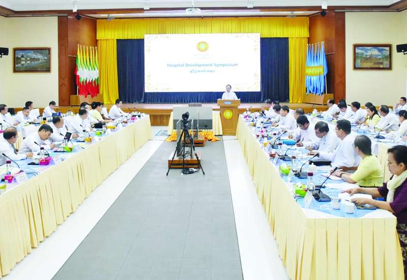 ကျန်းမာရေးဝန်ကြီးဌာန ကုသရေးဦးစီးဌာနက ကျင်းပသည့် ပြည်သူ့ဆေးရုံများ ဖွံ့ဖြိုးတိုးတက်ရေးဆွေးနွေးပွဲ (Hospital Development Symposium) ဖွင့်ပွဲအခမ်းအနားကို ယနေ့နံနက် ၉ နာရီက ကျန်းမာရေးဝန်ကြီးဌာန အစည်းအဝေးခန်းမ၌ ကျင်းပသည်။
