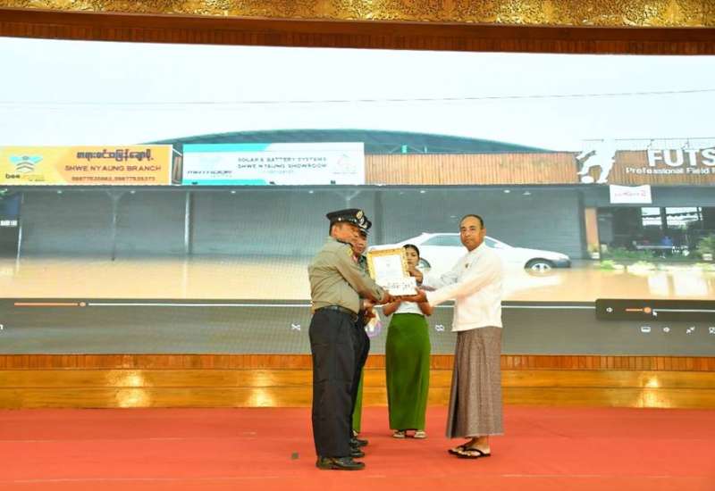 ရှမ်းပြည်နယ်အတွင်း တိုင်ဖွန်းမုန်တိုင်း (ရာဂိ) ဒဏ်ကြောင့် ရေဘေးသင့်ခဲ့သည့် မြို့နယ်များတွင် ကယ်ဆယ်ရေးလုပ်ငန်းများ၊ ပြန်လည်ထူထောင်ရေးလုပ်ငန်းများ စွမ်းစွမ်းတမံဆောင်ရွက်ခဲ့သည့် ဌာန/ အဖွဲ့အစည်းများအား ဂုဏ်ပြုချီးမြှင့်ပွဲကို ယနေ့နံနက်ပိုင်းတွင် တောင်ကြီးမြို့၊ မြို့တော်ခန်းမ၌ ပြုလုပ်ရာ ပြည်နယ်ဝန်ကြီးချုပ် ဦးအောင်အောင်၊ အရှေ့ပိုင်းတိုင်းစစ်ဌာနချုပ် တိုင်းမှူး ဗိုလ်ချုပ်ဇော်မင်းလတ်နှင့် ပြည်နယ်အစိုးရအဖွဲ့ဝင်ဝန်ကြီးများ၊ ဌာနဆိုင်ရာတာဝန်ရှိသူများ၊ ဖိတ်ကြားထားသူများ တက်ရောက်ကြသည်။