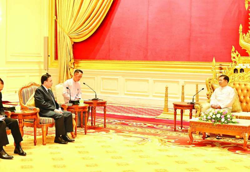 နိုင်ငံတော်စီမံအုပ်ချုပ်ရေးကောင်စီဥက္ကဋ္ဌ နိုင်ငံတော်ဝန်ကြီးချုပ် ဗိုလ်ချုပ်မှူးကြီး မင်းအောင်လှိုင်သည် တာဝန်ပြီးဆုံး၍ ပြန်လည်ထွက်ခွာမည့် မြန်မာနိုင်ငံဆိုင်ရာ လာအိုနိုင်ငံ သံအမတ်ကြီး H. E. Mr. Heuangseng KHAMDALAVONG အား ယနေ့နံနက်ပိုင်းတွင် နေပြည်တော်ရှိ နိုင်ငံတော်စီမံအုပ်ချုပ်ရေးကောင်စီဥက္ကဋ္ဌရုံး၊ သံတမန်ဆောင်ဧည့်ခန်းမ၌ လက်ခံတွေ့ဆုံသည်။