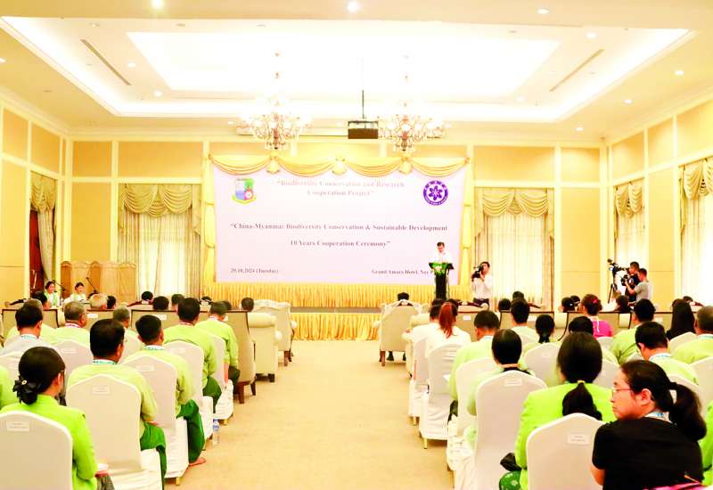 ဇီဝမျိုးစုံမျိုးကွဲဆိုင်ရာ ထိန်းသိမ်းခြင်းနှင့် ရေရှည်ဖွံ့ဖြိုးတိုးတက်ရေးလုပ်ငန်းများတွင် တရုတ်-မြန်မာပူးပေါင်းဆောင်ရွက်ခြင်း (၁၀) နှစ်ပြည့်အခမ်းအနားကို ယနေ့နံနက်ပိုင်းတွင် နေပြည်တော်ရှိ Grand Amara ဟိုတယ်၌ ကျင်းပသည်။