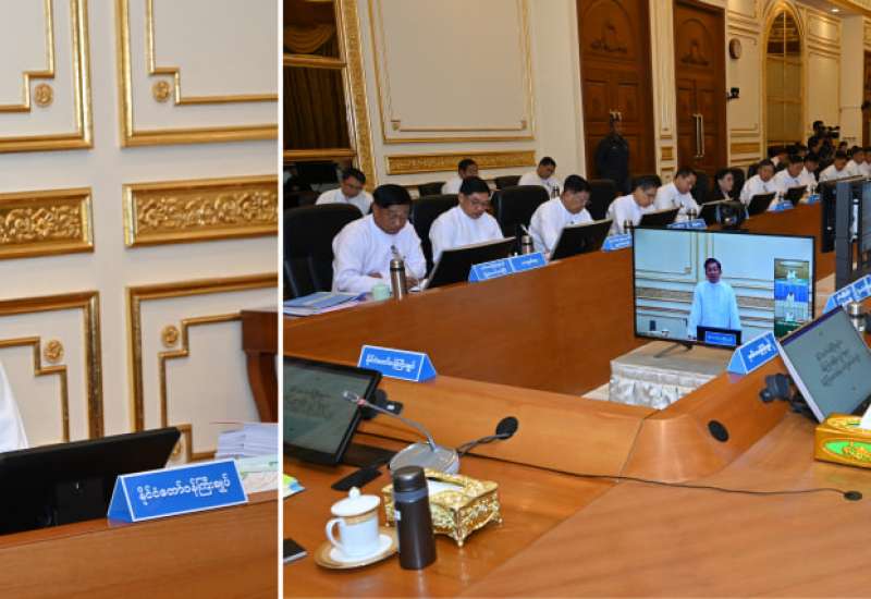 ပြည်ထောင်စုအစိုးရအဖွဲ့အစည်းအဝေး အမှတ်စဉ် (၇/၂၀၂၄) ကို ယနေ့နံနက်ပိုင်းတွင် နေပြည်တော်ရှိ နိုင်ငံတော်စီမံအုပ်ချုပ်ရေးကောင်စီဥက္ကဋ္ဌရုံး အစည်းအဝေးခန်းမ၌ ကျင်းပရာ နိုင်ငံတော်စီမံအုပ်ချုပ်ရေးကောင်စီဥက္ကဋ္ဌ နိုင်ငံတော်ဝန်ကြီးချုပ် ဗိုလ်ချုပ်မှူးကြီး မင်းအောင်လှိုင် တက်ရောက်အမှာစကားပြောကြားသည်။