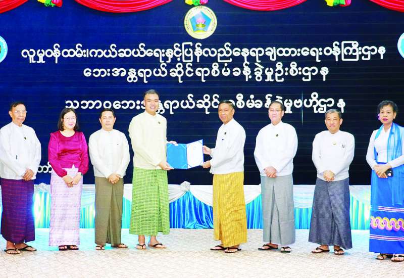 ရေဘေးဒဏ်ခံစားရသော အခြေခံပညာကျောင်းများအတွက် မြန်မာ နိင်ငံကျောက်မျက်ရတနာ လုပ်ငန်းရှင်များအသင်းက ကျောင်းသုံးပရိဘောဂများနှင့် စာရေးကိရိယာများ ပေးအပ်လှူဒါန်းခြင်း အခမ်းအနားကို ယနေ့မွန်းလွဲပိုင်းတွင် လူမှုဝန်ထမ်း၊ ကယ်ဆယ်ရေးနှင့် ပြန်လည်နေရာချထားရေးဝန်ကြီးဌာန သဘာဝဘေးအန္တရာယ်ဆိုင်ရာ စီမံခန့်ခွဲမှုဗဟိုဌာန(DMC)၌ ကျင်းပပြီး ပြည်ထောင်စုဝန်ကြီး ဒေါက်တာစိုးဝင်းက လက်ခံရယူ၍ ကျေးဇူးတင်စကား ပြောကြားကာ ဂုဏ်ပြုမှတ်တမ်းလွှာများ ပြန်လည်ပေးအပ်သည်။