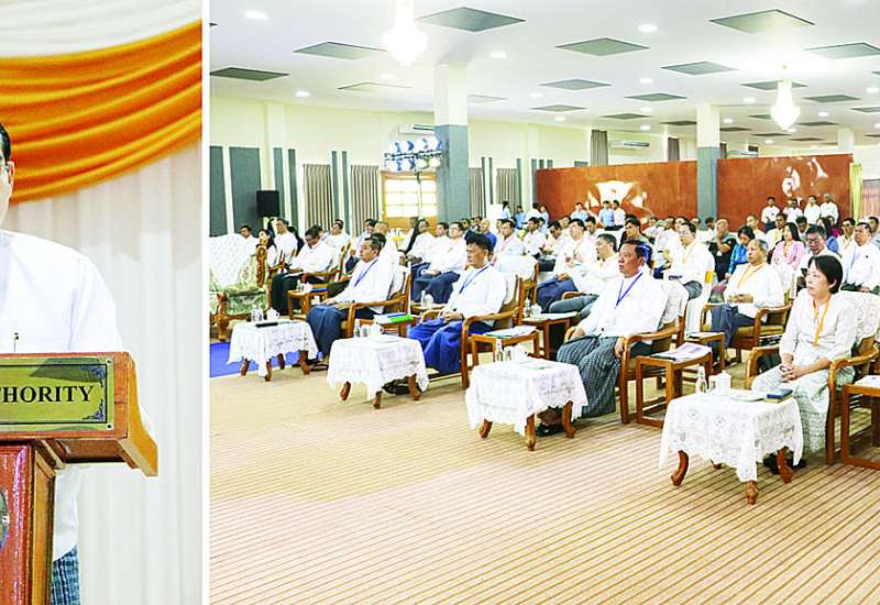 ပို့ဆောင်ရေးနှင့်ဆက်သွယ်ရေးဝန်ကြီးဌာန မြန်မာ့ဆိပ်ကမ်းအာဏာပိုင်မှ ဦးဆောင်ပြုလုပ်သည့် ဆိပ်ကမ်းလုပ်ငန်းများ စွမ်းဆောင်ရည်မြှင့်တင်ရေး အလုပ်ရုံဆွေးနွေးပွဲကို ယမန်နေ့ နံနက်ပိုင်းတွင် ရန်ကုန်မြို့ မင်္ဂလာတောင်ညွန့်မြို့နယ် စက်ဆန်းဝန်ထမ်းမိသားစုအိမ်ရာရှိ သီရိအဏ္ဏဝါခန်းမ၌ ကျင်းပသည်။