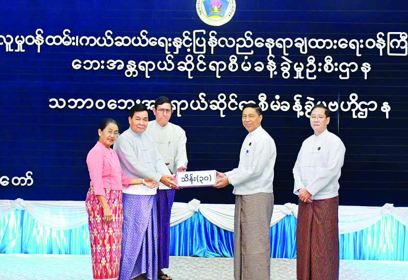 ရေဘေးဒဏ်ခံစားရသောဒေသများအတွက် အလှူငွေပေးအပ်လှူဒါန်းခြင်းအခမ်းအနားကို လူမှုဝန်ထမ်း၊ ကယ်ဆယ်ရေးနှင့်ပြန်လည်နေရာချထားရေးဝန်ကြီးဌာန၊ ဘေးအန္တရာယ်ဆိုင်ရာစီမံခန့်ခွဲမှုဗဟိုဌာန အစည်းအဝေးခန်းမ၌ ယနေ့မွန်းလွဲပိုင်းက ကျင်းပရာ လူမှုဝန်ထမ်း၊ ကယ်ဆယ်ရေးနှင့်ပြန်လည်နေရာချထားရေးဝန်ကြီးဌာန ပြည်ထောင်စုဝန်ကြီး ဒေါက်တာစိုးဝင်း တက်ရောက်၍ အလှူငွေများ လက်ခံရယူပြီး ကျေးဇူးတင်စကား ပြောကြားကာ ဂုဏ်ပြုမှတ်တမ်းလွှာများ ပြန်လည်ပေးအပ်သည်။