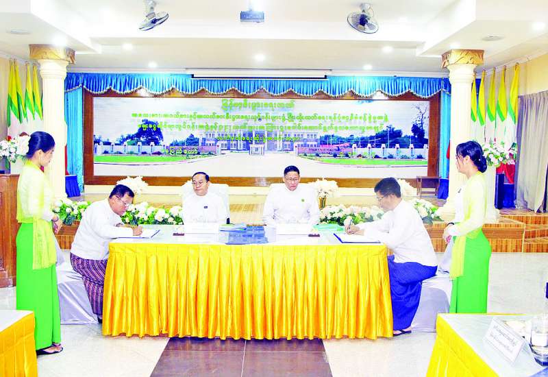 နိုင်ငံတော်စီမံအုပ်ချုပ်ရေးကောင်စီက ပြင်ဆင်ချမှတ်ခဲ့သည့် စီးပွားရေးဦးတည်ချက်များနှင့်အညီ အသေးစား၊ အငယ်စားနှင့် အလတ်စားစီးပွားရေးလုပ်ငန်းများ (MSME) ဖွံ့ဖြိုးတိုးတက်စေရန် နိုင်ငံတော်မှ ငွေကျပ် ၁၅၀ ဘီလီယံမတည်ပြီး သက်သာသော အတိုးနှုန်းဖြင့် ချေးငွေများအား Participating Financial Institutions (PFI) ဘဏ်များမှတစ်ဆင့် စနစ်တကျ ထုတ်ချေးနိုင်ရေးအတွက် ငွေရေးကြေးရေးဆိုင်ရာ ပူးပေါင်းဆောင်ရွက်မည့် အဖွဲ့အစည်းများအဖြစ် နိုင်ငံပိုင်ဘဏ်များဖြစ်ကြသည့် မြန်မာ့စီပွားရေးဘဏ်နှင့် မြန်မာ့လယ်ယာဖွံ့ဖြိုးရေး ဘဏ်တို့အပါအဝင် ပုဂ္ဂလိကဘဏ် ၁၅ ဘဏ်နှင့်ချေးငွေဆိုင်ရာ လုပ်ငန်းအဖွဲ့တို့အကြား ပူးပေါင်းဆောင်ရွက်မှုသဘောတူစာချုပ်များ လက်မှတ်ရေးထိုးပွဲအခမ်းအနားကို ယနေ့နံနက်ပိုင်းတွင် နေပြည်တော်ရှိ မြန်မာ့စီးပွားရေးဘဏ် (ရုံးချုပ်)၌ ကျင်းပသည်။
