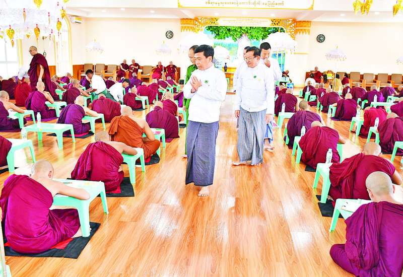 နေပြည်တော်ကောင်စီဥက္ကဋ္ဌ ဦးသန်းထွန်းဦးနှင့် ကောင်စီဝင်များသည် ယနေ့မွန်းလွဲပိုင်းတွင် နေပြည်တော်ဥတ္တရသီရိမြို့နယ် ဝဇိရာနန္ဒသုဗောဓာရုံကျောင်းတိုက်၌ကျင်းပသည့် နေပြည်တော် မြို့နယ်လုံးဆိုင်ရာ တတိယအကြိမ်သာသနာလင်္ကာရစာမေးပွဲသို့ ဝင်ရောက်ဖြေဆိုနေကြသည့် ရဟန်းသံဃာများနှင့် ရှင်သာမဏေများအား သွားရောက်ဖူးမြော်ကြည်ညိုသည်။