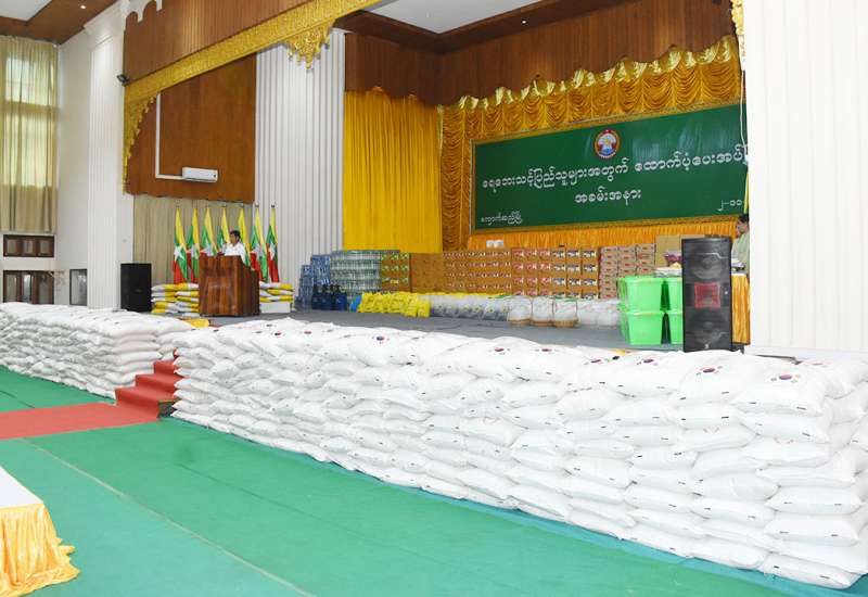 ရာဂီတိုင်ဖွန်းမုန်တိုင်း သက်ရောက်မှုကြောင့် ရေဘေးထိခိုက်ခံစားရသော ကျည်တောင်ကျေးရွာ အုပ်စုရှိ ထိခိုက်လွယ်အုပ်စုဝင်များအား ထောက်ပံ့ခြင်းနှင့် စိတ်လူမှုရေးပိုင်းဆိုင်ရာ ပံ့ပိုးပေးခြင်းအခမ်းအနားကို ယနေ့နံနက်ပိုင်းက နေပြည်တော်ဇေယျာသီရိမြို့နယ်ရှိ လှေခွင်းတောင်ကိုးခန်းကြီးကျောင်း၌ ကျင်းပသည်။