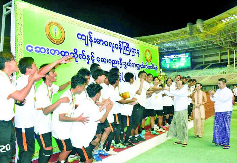 ကျန်းမာရေးဝန်ကြီးဌာန ဆေးတက္ကသိုလ်နှင့် ဆေးပညာနှီးနွှယ် တက္ကသိုလ်ပေါင်းစုံဘောလုံးပြိုင်ပွဲ (၂၀၂၄) ဗိုလ်လုပွဲနှင့် ဆုချီးမြှင့်ပွဲအခမ်းအနားကို ယနေ့မွန်းလွဲပိုင်းတွင် နေပြည်တော်ရှိ ဝဏ္ဏသိဒ္ဓိအားကစားကွင်း၌ကျင်းပသည်။