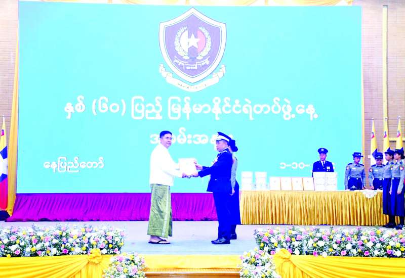 နှစ်(၆၀)ပြည့် မြန်မာနိုင်ငံရဲတပ်ဖွဲ့နေ့အခမ်းအနားကို ယနေ့နံနက်ပိုင်းတွင် နေပြည်တော်ရှိ မြန်မာအပြည်ပြည်ဆိုင်ရာကွန်ဗင်းရှင်းဗဟိုဌာန-၂ (MICC-2) ၌ ကျင်းပခဲ့ရာ ပြည်ထဲရေးဝန်ကြီးဌာန မြန်မာနိုင်ငံ ရဲတပ်ဖွဲ့ရဲချုပ် ဒုတိယရဲဗိုလ်ချုပ်ကြီးဝင်းဇော်မိုး တက်ရောက်မိန့်ခွန်းပြောကြားခဲ့သည်။