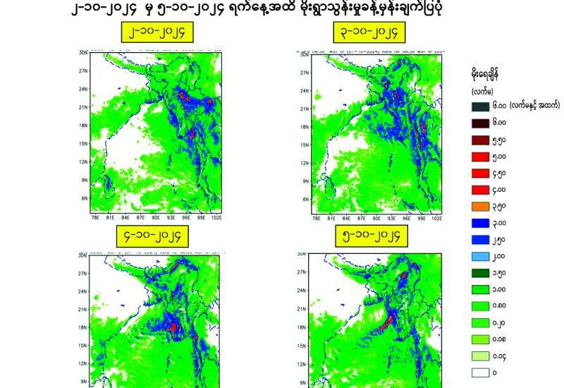 မိုးလေဝသနှင့်ဇလဗေဒညွန်ကြားမှု ဦးစီးဌာနမှ ယနေ့ညနေ (၅) နာရီခွဲအချိန် တိုင်းထွာချက်များအရ အနောက်ဘက်မှရွေ့လျားလာသော လေပွေလှိုင်းများ၏ အရှိန်ကြောင့်လည်းကောင်း၊ အပူပျံတက်တိမ်များဖြစ်ထွန်းမှု အားကောင်းခြင်းကြောင့်လည်းကောင်း၊ ကပ္ပလီပင်လယ်ပြင်နှင့် ဘင်္ဂလားပင်လယ်အော်တို့မှ လေနွေးများနှင့် တရုတ်ပြည်မကြီးပေါ်ရှိ လေဖိအားကြီးရပ်ဝန်းဒေသမှ ရွေ့လျားလာသော လေအေးများတွေ့ဆုံမှုကြောင့်လည်းကောင်း၊ တောင်တရုတ်ပင်လယ်ပြင်တွင်ဖြစ်ပေါ်နေသော တိုင်ဖွန်းမုန်တိုင်း “ကရတ်သွန်”မှ ပြတ်ထွက်လာသော တိမ်တိုက်များကြောင့်လည်းကောင်း ယနေ့ညမှ အောက်တိုဘာလ(၆)ရက်နေ့အတွင်း နေပြည်တော်၊ စစ်ကိုင်းတိုင်းဒေသကြီး၊ မန္တလေးတိုင်းဒေသကြီး၊ မကွေးတိုင်းဒေသကြီး၊ ဧရာဝတီတိုင်းဒေသကြီး၊ တနင်္သာရီတိုင်းဒေသကြီး၊ ကချင်ပြည်နယ်၊ ချင်းပြည်နယ်၊ ရခိုင်ပြည်နယ်၊ ကရင်ပြည်နယ်နှင့် မွန်ပြည်နယ်တို့တွင် နေရာအနှံ့အပြား မိုးထစ်ချုန်းရွာပြီး၊ အချို့ဒေသများတွင် ဒေသအလိုက်နှင့် နေရာကွက်၍ မိုးကြီးခြင်းများနှင့်အတူ လေပြင်းတိုက်ခတ်ခြင်းများဖြစ်ပေါ်နိုင်ကာ၊ ပဲခူးတိုင်းဒေသကြီး၊ ရန်ကုန်တိုင်းဒေသကြီး၊ ရှမ်းပြည်နယ်နှင့် ကယားပြည်နယ်တို့တွင် နေရာကျဲကျဲမှ နေရာစိပ်စိပ် မိုးထစ်ချုန်းရွာနိုင်ပါသည်။”