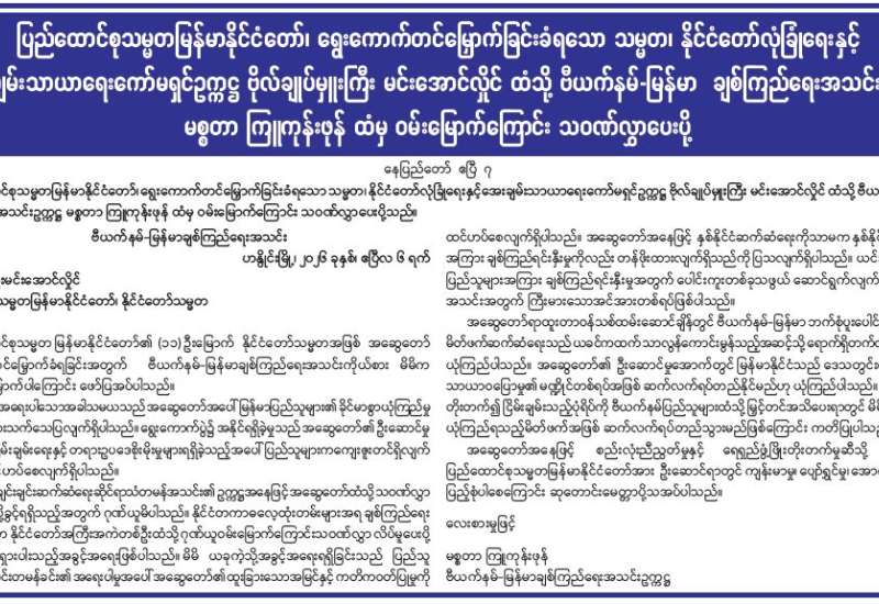 ရန်ကုန်မြို့နှင့် မန္တလေးမြို့အတွက် ရည်ညွှန်းလက်ကားဈေးနှုန်းများနှင့် ပြည်ထောင်စုနယ်မြေ နေပြည်တော်၊ တိုင်းဒေသကြီး/ပြည်နယ် မြို့တော်များအတွက် ရည်ညွှန်းလက်လီဈေးနှုန်းများ