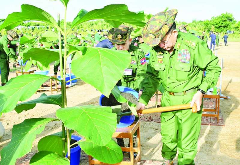 သဘာဝပတ်ဝန်းကျင်အား ထိန်းသိမ်းနိုင်စေရန်နှင့် ရာသီဥတုကို အထောက်အကူဖြစ်စေရန်၊ အရိပ်အာဝါသရရှိစေရန်၊ နိုင်ငံ့စီးပွားရေးအတွက် တစ်ဖက်တစ်လမ်းမှ အထောက်အကူဖြစ်စေရန်ရည်ရွယ်၍ ကာကွယ်ရေးဦးစီးချုပ်ရုံး (ကြည်း၊ ရေ၊ လေ) မိသားစုများနှင့် တိုင်းစစ်ဌာနချုပ်အသီးသီးတို့တွင် ၂၀၁၁ ခုနှစ်မှစ၍ နှစ်စဉ် မိုးရာသီတစ်အုပ်တစ်မ သစ်ပင်စိုက်ပျိုးပွဲများ ကျင်းပပြုလုပ်လျက်ရှိသည်။