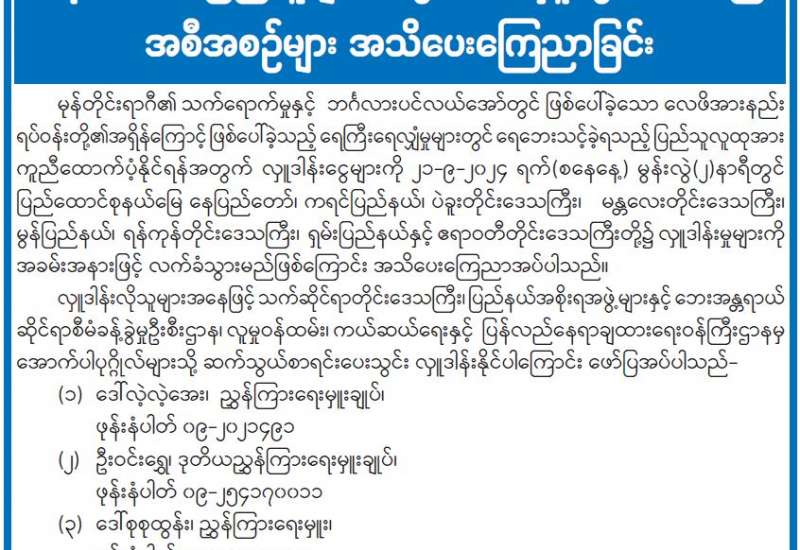 တိုင်းရင်းသားဘာသာစကားကိုသာ အသုံးပြုသည့် ဒေသများတွင် ဒေသခံဘာသာစကားဖြင့် မေးမြန်း၍ သန်းခေါင်စာရင်းကောက်ယူနိုင်ရန်အတွက် ပူးပေါင်းပါဝင်ကူညီဆောင်ရွက်နိုင်ရေး လုပ်ငန်းညှိနှိုင်းအစည်းအဝေးကို ယနေ့နံနက်ပိုင်းတွင် တိုင်းရင်းသားလူမျိုးများရေးရာဝန်ကြီးဌာန အစည်းအဝေးခန်းမ၌ ကျင်းပသည်။