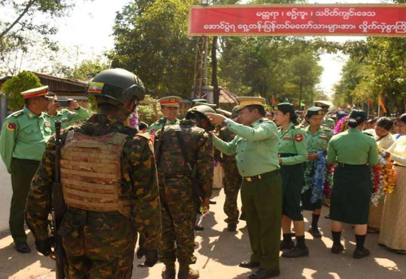 မန္တလေးတိုင်းဒေသကြီး မတ္တရာမြို့နယ်၊ စဉ့်ကူးမြို့နယ်၊ သပိတ်ကျင်းမြို့နယ် ဒေသတစ်ဝိုက်ရှိ လက်နက်ကိုင်အကြမ်းဖက်အဖွဲ့များနှင့် PDF အမည်ခံ အကြမ်းဖက်အဖွဲ့များအား ရွပ်ရွပ်ချွံချွံတိုက်ပွဲဝင်၍ အောင်ပွဲအလီလီရယူနိုင်ခဲ့သော ရှေ့တန်းပြန်နိုင်ငံ့သားကောင်း တပ်မတော်သားများအား ဂုဏ်ပြုကြိုဆိုခြင်းကို ယနေ့နံနက်ပိုင်းတွင် ရန်ကုန်တိုင်းဒေသကြီး၊ တိုက်ကြီးမြို့နယ်ရှိ နယ်မြေခံတပ်ရင်း၌ပြုလုပ်ရာ ရန်ကုန်တိုင်းစစ်ဌာနချုပ် တိုင်းမှူး ဗိုလ်ချုပ် ပြည့်စုံလင်းနှင့် ဌာနဆိုင်ရာတာဝန်ရှိသူများ၊ ကျောင်းသား/ကျောင်းသူများ၊ အနုပညာရှင်များနှင့် ဒေသခံပြည်သူများ တက်ရောက်ကြသည်။