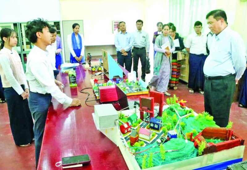 သိပ္ပံနှင့်နည်းပညာဝန်ကြီးဌာန ပြည်ထောင်စုဝန်ကြီး ဒေါက်တာမျိုးသိန်းကျော်သည် ယနေ့ နံနက်ပိုင်းတွင် နည်းပညာတက္ကသိုလ် (မန္တလေး) ၌ စာသင်ဆောင်များ၏ ပြုပြင်ပြီးစီးမှု အခြေအနေကို သွားရောက်ကြည့်ရှုစစ်ဆေးသည်။
