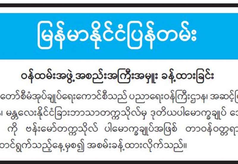 ပြည်ထောင်စုရွေးကောက်ပွဲကော်မရှင် ဗဟိုမဲဆန္ဒရှင်စာရင်းများစီမံခန့်ခွဲမှုစနစ် (CVLMS) အဆင့်မြှင့်မွမ်းမံထားသည့်အခြေအနေ ရှင်းလင်းတင်ပြခြင်းအခမ်းအနားကို ယနေ့နံနက် ၁၀ နာရီက ပြည်ထောင်စုရွေးကောက်ပွဲကော်မရှင်ရုံးအစည်းအဝေးခန်းမ၌ ကျင်းပသည်။