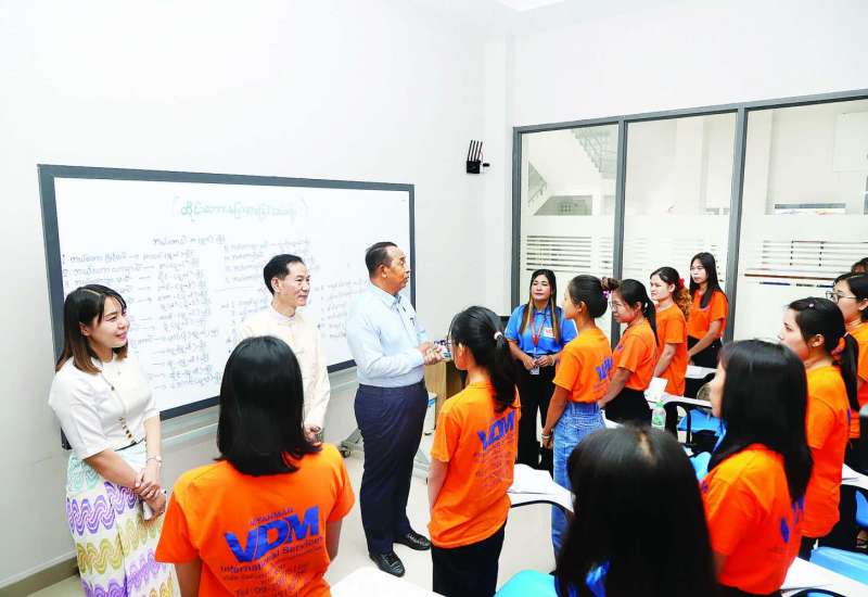 အလုပ်သမားဝန်ကြီးဌာန ပြည်ထောင်စုဝန်ကြီး ဦးမြင့်နောင်သည် တာဝန်ရှိသူများနှင့်အတူ ယနေ့မွန်းလွဲပိုင်းတွင် ရန်ကုန်တိုင်းဒေသကြီး လှိုင်သာယာ (အနောက်ပိုင်း)မြို့နယ်ရှိ ပြည်ပအလုပ်အကိုင်အကျိုးဆောင် (ထိုင်း) လိုင်စင်ရ အေဂျင်စီဖြစ်သည့် VDM Co., Ltd ၌ ထိုင်းနိုင်ငံသို့ သွားရောက်အလုပ်လုပ်ကိုင်မည့် အလုပ်သမားများအား မိသားစုလွှဲပို့ငွေ ၂၅ ရာခိုင်နှုန်း တရားဝင်လမ်းကြောင်းမှ လွှဲပို့စေရေး၊ ထိုင်းနိုင်ငံ၏ ဥပဒေများ၊ ယဉ်ကျေးမှုများနှင့် လုပ်ငန်းခွင်အတွင်း လိုက်နာရမည့် စည်းကမ်းများ၊ ဆောင်ရန်၊ ရှောင်ရန်အချက်များနှင့်စပ်လျဉ်း၍ လုပ်ငန်းခွင်အကြိုသင်တန်း သင်ကြားပို့ချနေမှုကို ကြည့်ရှုစစ်ဆေးပြီး လိုအပ်သည်များကို မှာကြားသည်။