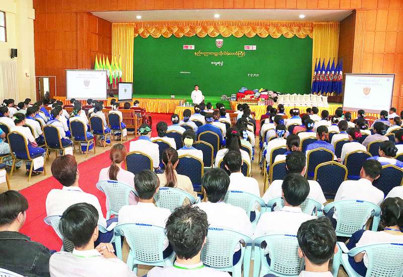 ဧရာဝတီတိုင်းဒေသကြီးအတွင်းမှ ပြည်သူ့စစ်မှုထမ်းသင်တန်း အမှတ်စဉ် (၅/၂၀၂၄) သို့ တက်ရောက်မည့် နိုင်ငံ့သားကောင်းရတနာများအား ယနေ့တွင် အနောက်တောင်တိုင်းစစ်ဌာနချုပ် တပ်နယ်စားကစားရုံ၌ တိုင်းဒေသကြီးဝန်ကြီးချုပ် ဦးတင်မောင်ဝင်း၊ တိုင်းမှူးဗိုလ်ချုပ်ဝေလင်းနှင့် တာဝန်ရှိသူများက သွားရောက်တွေ့ဆုံအမှာစကားပြောကြားသည်။