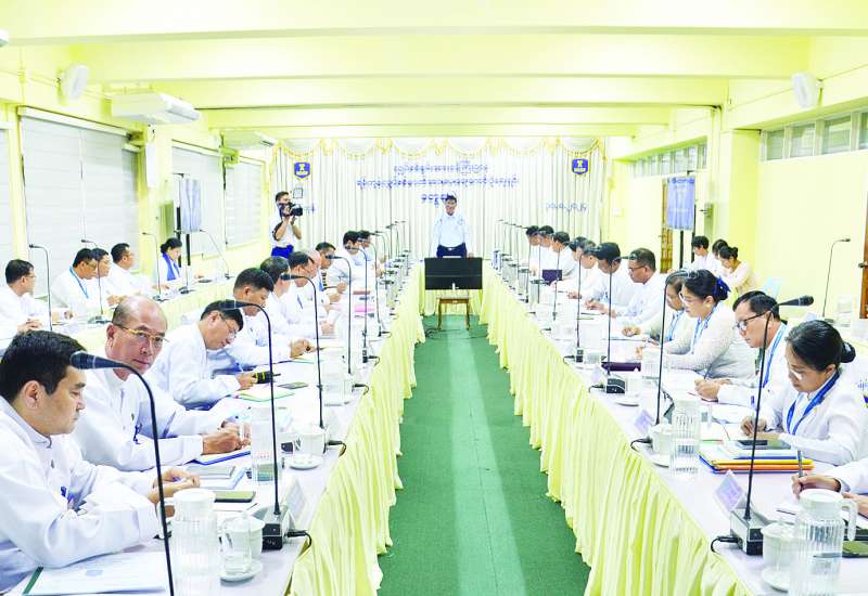 ရန်ကုန်တိုင်းဒေသကြီးအတွင်း လျှပ်စစ်ဓာတ်အား ဖြန့်ဖြူးပေးနေမှုအခြေအနေများနှင့် ပတ်သက်၍ လုပ်ငန်းညှိနှိုင်းအစည်းအဝေးကို ယနေ့ မွန်းလွဲပိုင်းတွင် ရန်ကုန်လျှပ်စစ်ဓာတ်အားပေးရေးကော်ပိုရေးရှင်း (ရုံးချုပ်) အစည်းအဝေးခန်းမ၌ ကျင်းပသည်။