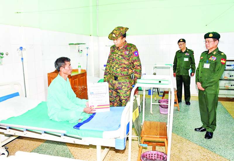 မန္တလေးတိုင်းဒေသကြီး၊ ပြင်ဦးလွင်မြို့ရှိ တပ်မတော်ဆေးရုံ၌ တက်ရောက်ဆေးကုသမှုခံယူလျက်ရှိသော အရာရှိ၊ စစ်သည်၊ မိသားစုများနှင့် ဒေသခံပြည်သူများအား ယနေ့မွန်းလွဲပိုင်းတွင် အလယ်ပိုင်းတိုင်းစစ်ဌာနချုပ် တိုင်းမှူးဗိုလ်မှူးချုပ်ကျော်ကိုထိုက်နှင့် တာဝန်ရှိသူများက သွားရောက်ကြည့်ရှု၍ တစ်ဦးချင်း၏ ရောဂါဖြစ်ပွားမှု၊ ဆေးဝါးကုသပေးထားမှုနှင့် ကျန်းမာရေးတိုးတက်ကောင်းမွန်မှု အခြေအနေများကို ရင်းရင်းနှီးနှီးမေးမြန်း အားပေးစကားပြောကြားပြီး အာဟာရဖြည့် စားသောက်ဖွယ်ရာများ ပေးအပ်သည်။