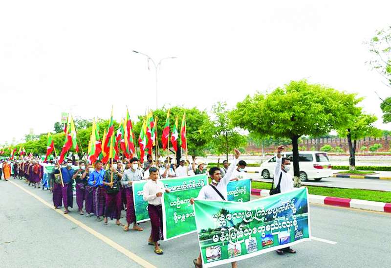 မန္တလေးတိုင်းဒေသကြီး၊ မန္တလေးမြို့ရှိ ယဉ်ကျေးမှုအမွေအနှစ်များနှင့် မြို့တော်ကြီးကိုကာကွယ်ရန်၊ စစ်ဘေးမဖြစ်စေရန်အတွက် ပြည်သူများက ဆန္ဒထုတ်ဖော်ပွဲကို ယနေ့မွန်းလွဲပိုင်းတွင် အောင်မြေသာစံမြို့နယ်၊ ဒေါနဘွားရပ်ကွက်၊ ၁၄ လမ်း၊ ၆၃ လမ်းနှင့် ၆၄ လမ်းကြား၊ မန္တလေးတောင်ခြေရှိ ခြင်္သေ့ကြီးနှစ်ကောင်ရှေ့တွင် သံဃာတော်များနှင့် မျိုးချစ်ဒေသခံပြည်သူများစုပေါင်း၍ ပြုလုပ်ခဲ့ကြသည်။