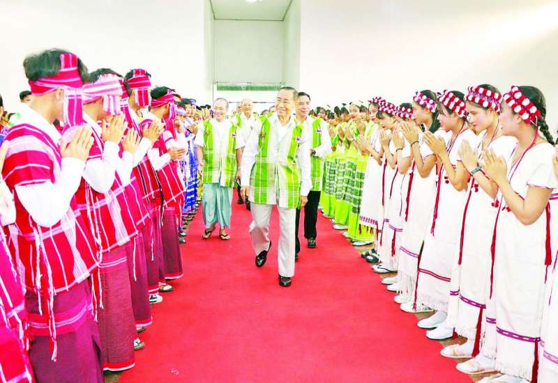 ပဲခူးမြို့ မြို့တော်ခန်းမ၌ ယနေ့နံနက်ပိုင်းတွင် ကရင်ရိုးရာဝါခေါင်လချည်ဖြူဖွဲ့ မင်္ဂလာအခမ်းအနားကျင်းပရာ နိုင်ငံတော်စီမံအုပ်ချုပ်ရေးကောင်စီအဖွဲ့ဝင် မန်းငြိမ်းမောင်၊ တိုင်းရင်းသားလူမျိုးများရေးရာဝန်ကြီးဌာန ပြည်ထောင်စုဝန်ကြီးနှင့် ပဲခူးတိုင်းဒေသကြီးဝန်ကြီးချုပ်တို့ တက်ရောက်ချီးမြှင့်ကြသည်။
