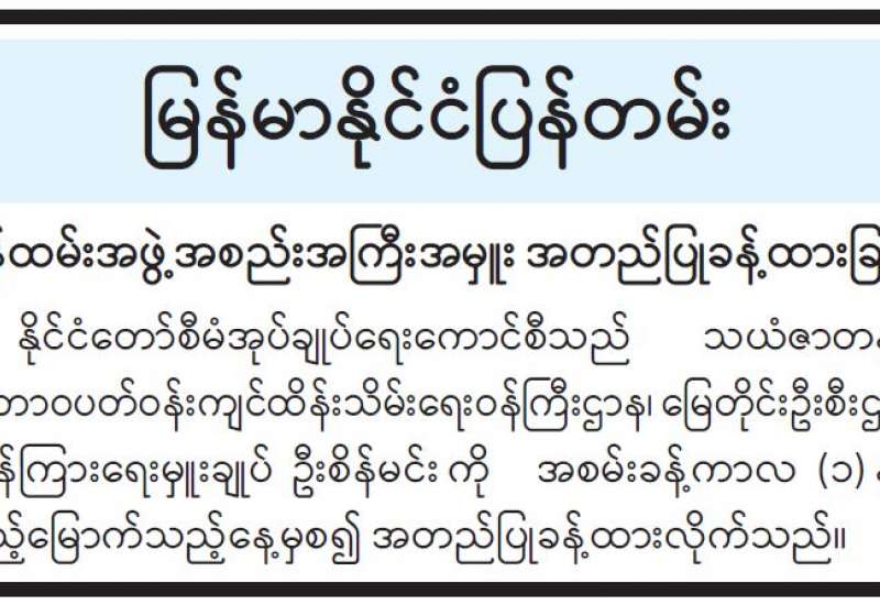 ရန်ကုန်မြို့နှင့် မန္တလေးမြို့အတွက် ရည်ညွှန်းလက်ကားဈေးနှုန်းများနှင့် ပြည်ထောင်စုနယ်မြေ နေပြည်တော်၊ တိုင်းဒေသကြီး/ပြည်နယ် မြို့တော်များအတွက် ရည်ညွှန်းလက်လီဈေးနှုန်းများ