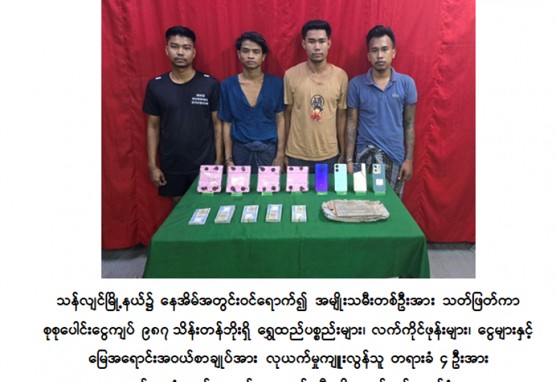 ၂၀၂၄ ခုနှစ်၊ ဩဂုတ်လ ၆ ရက်နေ့တွင် ရန်ကုန်တိုင်းဒေသကြီး၊ သန်လျင်မြို့နယ်၊ သူဌေးကွင်းကျေးရွာနေ ဒေါ်သန်းသန်းဆင့် (ခ) မအကြီးမ (၄၉) နှစ်သည် မိသားစုများအလုပ်ကိုယ်စီသွားနေစဉ် နေအိမ်၌တစ်ဦးတည်းကျန်ရှိခဲ့ပြီး မောင်ဖြစ်သူ ကိုမင်းအောင်ကျော် အလုပ်မှနေအိမ်သို့ ည ၆ နာရီခွဲခန့်အချိန် ပြန်လည်ရောက်ရှိစဉ် အစ်မဖြစ်သူ ဒေါ်သန်းသန်းဆင့် (ခ) မအမကြီးမှာ နေအိမ်အိပ်ခန်းအတွင်း ကုတင်ဘေးတွင် ဒဏ်ရာများဖြင့်သေဆုံးနေပြီး နေအိမ်ဘီရိုနှစ်လုံးအတွင်းမှ ရွှေထည်ပစ္စည်းမျိုးစုံ ၁၀ ကျပ်သားနှင့် ငွေကျပ်သိန်း ၃၀၀၊ လက်ကိုင်ဖုန်း ၃ လုံး၊ မြေအရောင်းအဝယ်စာချုပ် ၁ စောင်၊ စုစုပေါင်းကာလတန်ဖိုးငွေကျပ် ၉၈၇ သိန်းခန့်ပျောက်ဆုံးလျက်ရှိကြောင်း တွေ့ရှိရသဖြင့် သန်လျင်မြို့မရဲစခန်း (ပ)၂၉၁/၂၀၂၄၊ ရာဇသတ်ကြီးပုဒ်မ ၃၀၂/၃၉၂ ဖြင့် အမှုဖွင့်လှစ်ကာ တရားခံများဖမ်းဆီးရမိရေးဆောင်ရွက်ခဲ့သည်။