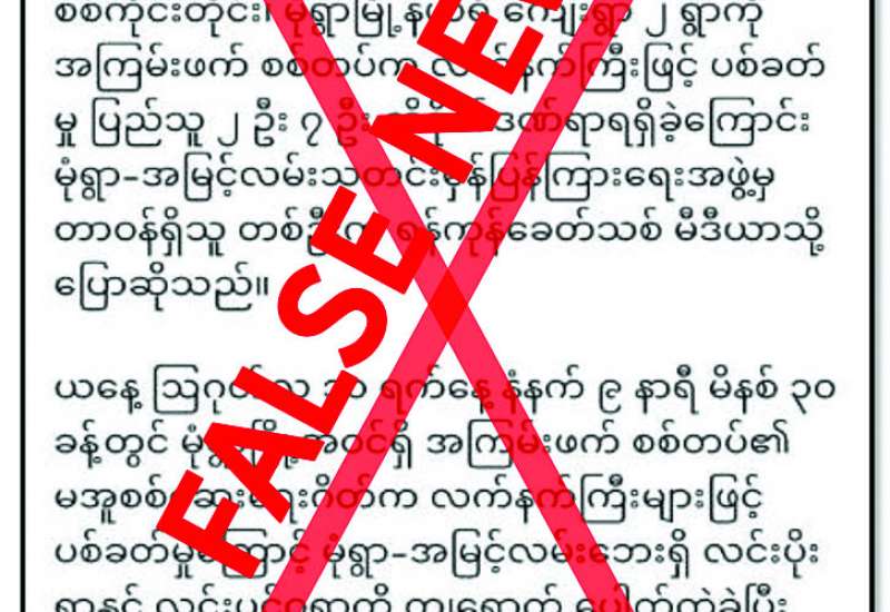ချင်းပြည်နယ် မင်းတပ်မြို့ရှိ နယ်မြေခံတပ်ရင်းက ဩဂုတ် ၉ ရက်တွင် လက်နက်ကြီးဖြင့် ပစ်ခတ်ခဲ့သဖြင့် မင်းတပ်မြို့အရှေ့ဘက်တွင် တောင်ယာလုပ်ကိုင်နေသည့် ဒေသခံအမျိုးသမီးတစ်ဦး သေဆုံးပြီး ကလေးငယ်တစ်ဦး ထိခိုက်ဒဏ်ရာ ရရှိခဲ့သည်ဟုလည်းကောင်း၊ စစ်ကိုင်းတိုင်း ဒေသကြီး မုံရွာမြို့အဝင်ရှိ စစ်ဆေးရေးဂိတ်မှ လုံခြုံရေးတပ်ဖွဲ့ဝင်များက ဩဂုတ် ၁၁ ရက်တွင် လက်နက်ကြီးဖြင့် ပစ်ခတ်မှုကြောင့် မုံရွာ-အမြင့်လမ်းဘေးရှိ ကျေးရွာများအတွင်းသို့ လက်နက်ကြီး ကျည်များကျရောက်ပေါက်ကွဲခဲ့ပြီး ပြည်သူ နှစ်ဦးသေဆုံးကာ ခုနစ်ဦးထိခိုက်ဒဏ်ရာ ရရှိခဲ့သည်ဟုလည်းကောင်း တရားမဝင်ပြည်ဖျက်မီဒီယာများက မဟုတ်မမှန်သတင်းများ ရေးသားဖြန့်ဝေနေသည်ကို တွေ့ရှိရသည်။