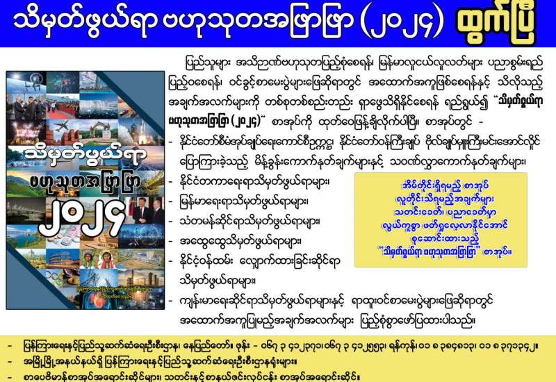 ပြန်ကြားရေးနှင့်ပြည်သူ့ဆက်ဆံရေးဦးစီးဌာနက စီစဉ်ထုတ်ဝေသည့် “သိမှတ်ဖွယ်ရာ ဗဟုသုတအဖြာဖြာ (၂၀၂၄)” စာအုပ်သည် ပြည်သူများ အသိဉာဏ်ဗဟုသုတပြည့်စုံစေရန်၊ ပြန်တမ်းဝင် အရာရှိအဆင့် (စတင်ခန့်) စာမေးပွဲများနှင့် အခြားဝင်ခွင့်စာမေးပွဲများဖြေဆိုရာတွင် အထောက်အကူဖြစ်စေရန်၊ သိရှိလိုသည့်အချက်အလက်များကို တစ်စုတစ်စည်းတည်း ရှာဖွေလေ့လာဖတ်ရှုနိုင်စေရန်ရည်ရွယ်၍ ၂၀၀၈ ခုနှစ်မှစတင်ကာ နှစ်စဉ်ထုတ်ဝေခဲ့သောစာအုပ်ဖြစ်ပါသည်။