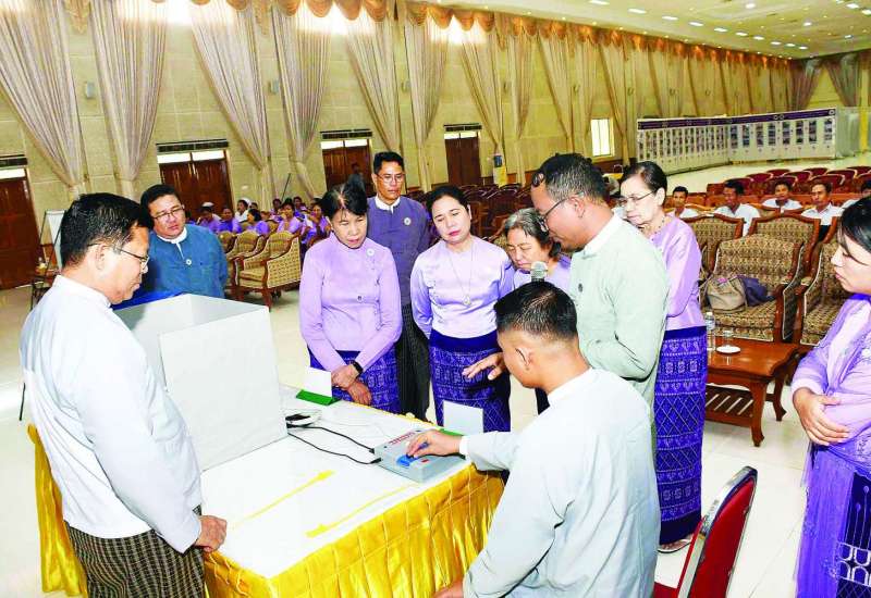 မြန်မာအီလက်ထရောနစ် မဲပေး စက်နှင့်စပ်လျဉ်းပြီး ရှင်းလင်းပြသခြင်းနှင့် လက်တွေ့သရုပ်ပြစမ်းသပ်မဲပေးခြင်းကို ယနေ့နံနက် ၉ နာရီတွင် နေပြည်တော်ရှိ မြန်မာနိုင်ငံ မိခင်နှင့်ကလေး စောင့်ရှောက်ရေးအသင်း (ရုံးချုပ်) ၌ ကျင်းပသည်။