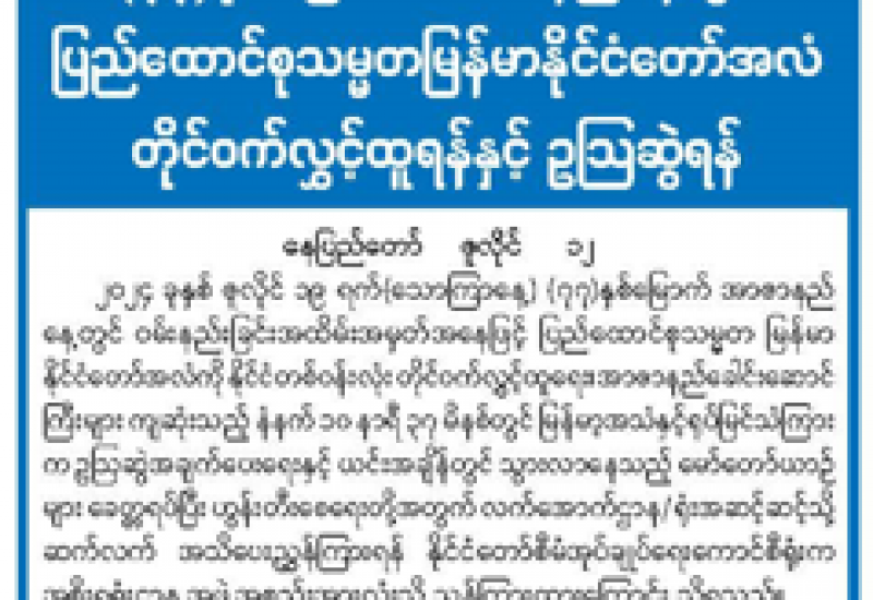 ရန်ကုန်မြို့နှင့် မန္တလေးမြို့အတွက် ရည်ညွှန်းလက်ကားဈေးနှုန်းများနှင့် ပြည်ထောင်စုနယ်မြေ နေပြည်တော်၊ တိုင်းဒေသကြီး/ ပြည်နယ် မြို့တော်များအတွက် ရည်ညွှန်းလက်လီဈေးနှုန်းများ
