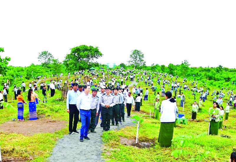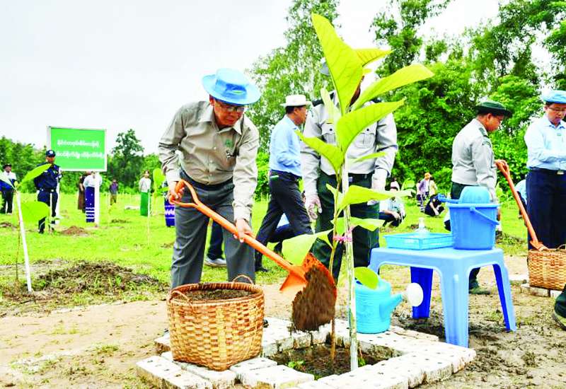 သယံဇာတနှင့် သဘာဝပတ်ဝန်းကျင်ထိန်းသိမ်းရေးဝန်ကြီးဌာန ၂၀၂၄ ခုနှစ် မိုးရာသီ စုပေါင်းသစ်ပင်စိုက်ပျိုးပွဲကို ယနေ့နံနက်ပိုင်းတွင် လယ်ဝေးမြို့နယ် ရန်အောင်မြင်ကြိုးဝိုင်း အကွက်အမှတ် ၁၆ အတွင်းကျင်းပပြုလုပ်ရာ ပြည်ထောင်စုဝန်ကြီး ဦးခင်မောင်ရီ၊ ဒုတိယဝန်ကြီးဦးမင်းသူ၊ အမြဲတမ်းအတွင်းဝန်နှင့် ဌာနအကြီးအကဲများ၊ အရာထမ်း၊ အမှုထမ်းများ၊ သစ်တောနှင့်ပတ်ဝန်းကျင်ဆိုင်ရာ တက္ကသိုလ်မှ ဆရာ၊ ဆရာမများနှင့် ကျောင်းသားကျောင်းသူများ တက်ရောက်ကြသည်။