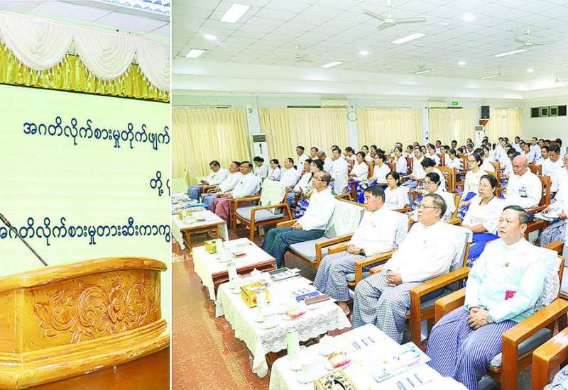 အဂတိလိုက်စားမှုတိုက်ဖျက်ရေးကော်မရှင်နှင့် အလုပ်သမားဝန်ကြီးဌာနတို့ ပူးပေါင်းဆောင်ရွက်သည့် အဂတိလိုက်စားမှု တားဆီးကာကွယ်ရေးဆိုင်ရာ အသိပညာပေးရှင်းလင်းဆွေးနွေးပွဲ အခမ်းအနားကို ယနေ့နံနက်ပိုင်းတွင် အလုပ်သမားဝန်ကြီးဌာန အစည်းအဝေးခန်းမ၌ ကျင်းပသည်။