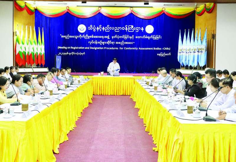 အမျိုးသားအဆင့်အရည်အသွေးဆိုင်ရာ အခြေခံအဆောက်အအုံဖွံ့ဖြိုးတိုးတက်စေရေးအတွက် အရည်အသွေးကိုက်ညီမှုစစ်ဆေးခြင်းကဏ္ဍရှိ အစိုးရ၊ ပုဂ္ဂလိက အရည်အသွေး ကိုက်ညီမှုစစ်ဆေးရေးအဖွဲ့များဖြစ်သည့် အရည်အသွေးထောက်ခံချက်ထုတ်ပေးရေးအဖွဲ့များ (Certification Bodies)၊ စမ်းသပ်ဓာတ်ခွဲခန်းများ၊ စံဖြင့် တိုက်ကြည့်စစ်ဆေးခြင်း ဓာတ်ခွဲခန်းများ (Calibration Laboratories)၊ အရည်အသွေး စုံစမ်းစစ်ဆေးရေးအဖွဲ့များ (Inspection Bodies)မှ သတ်မှတ်ထားသော စံချိန်စံညွှန်းများနှင့်အညီ ဆောင်ရွက်နိုင်ရန်နှင့် အပြည်ပြည်ဆိုင်ရာနှင့် ဒေသဆိုင်ရာအဖွဲ့အစည်းများ၏ အပြန်အလှန် အသိအမှတ်ပြုအစီအစဉ်များတွင် လိုက်ပါဆောင်ရွက်နိုင်ရေးအတွက် အရည်အသွေးကိုက်ညီမှုစစ်ဆေးရေးအဖွဲ့ မှတ်ပုံတင်ခြင်းနှင့် ထောက်ခံချက်ပြုခြင်းလုပ်ငန်းစဉ်များဆိုင်ရာ အစည်းအဝေး (Meeting on Registration and Designation Procedures for Conformity Assessment Bodies-CABs) ကို ယနေ့နံနက်ပိုင်းတွင် သိပ္ပံနှင့် နည်းပညာဝန်ကြီးဌာန အစည်းအဝေးခန်းမ၌ ကျင်းပသည်။