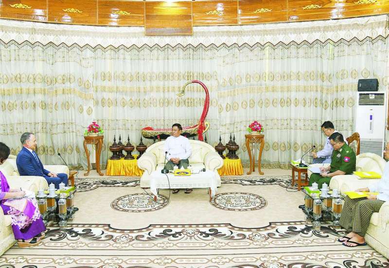 နိုင်ငံတော်စီမံအုပ်ချုပ်ရေးကောင်စီအဖွဲ့ဝင် ဒုတိယဝန်ကြီးချုပ်နှင့် ကာကွယ်ရေးဝန်ကြီးဌာန ပြည်ထောင်စုဝန်ကြီး ဗိုလ်ချုပ်ကြီး တင်အောင်စန်းသည် မြန်မာနိုင်ငံဆိုင်ရာ ကုလသမဂ္ဂယာယီဌာနေညှိနှိုင်းရေးမှူးနှင့် လူသားချင်းစာနာထောက်ထားမှုဆိုင်ရာ ယာယီညှိနှိုင်းရေးမှူး Mr. Marcoluigi Corsi ကို ယနေ့နံနက်ပိုင်းတွင် ပြည်ထောင်စုဝန်ကြီးရုံး ဧည့်ခန်းမ၌ လက်ခံတွေ့ဆုံသည်။