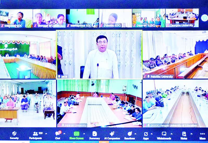 ပညာရေးဝန်ကြီးဌာန ပြည်ထောင်စုဝန်ကြီး ဒေါက်တာညွန့်ဖေသည် ယနေ့နံနက်ပိုင်းတွင် တက္ကသိုလ်၊ ဒီဂရီကောလိပ်၊ ကောလိပ်များမှ ပါမောက္ခချုပ်များ၊ ကျောင်းအုပ်ကြီးများ၊ တိုင်းဒေသကြီး/ပြည်နယ် ပညာရေးမှူးများကို နေပြည်တော်ရှိပညာရေးဝန်ကြီးဌာန အစည်းအဝေးခန်းမမှ အွန်လိုင်းဖြင့် တွေ့ဆုံသည်။