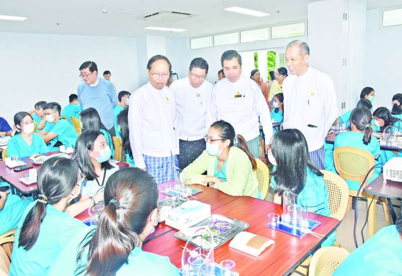 ကျန်းမာရေးဝန်ကြီးဌာန ပြည်ထောင်စုဝန်ကြီး ပါမောက္ခဒေါက်တာ သက်ခိုင်ဝင်းသည် တာဝန်ရှိသူ များနှင့်အတူ ယနေ့နံနက်ပိုင်းတွင် လမ်းမတော်မြို့နယ်ရှိ ဆေးတက္ကသိုလ် (၁) ရန်ကုန်ရှိ ဆေးပညာကျွမ်းကျင်မှု ပုံတူပြုလေ့ကျင့်ရေးနှင့် သုတေသနဌာန (MEDICAL SKILLS, SIMULATION AND RESEARCH CENTER) သို့ရောက်ရှိပြီး အလုပ်သင်ဆရာဝန် သစ်လွင် (၇/၂၀၂၄) များနှင့် တွေ့ဆုံအမှာစကား ပြောကြားသည်။