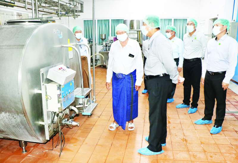 သမဝါယမနှင့် ကျေးလက်ဖွံ့ဖြိုးရေးဝန်ကြီးဌာန ပြည်ထောင်စုဝန်ကြီး ဦးလှမိုးသည် တာဝန်ရှိသူများနှင့်အတူ ယနေ့နံနက်ပိုင်းတွင် ရန်ကုန်တိုင်းဒေသကြီးအတွင်း နို့နှင့်နို့ထွက်ပစ္စည်း ထုတ်လုပ်ရေးလုပ်ငန်းများ ပိုမိုအောင်မြင်ရေး ကွင်းဆင်းကြည့်ရှုစစ်ဆေးသည်။